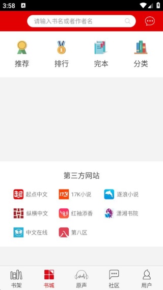 2、进入书城自己找书,第三方网站的小说都能在此找到;