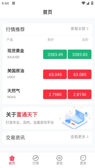 富通天下专业版app是一款超实用的行情资讯软件。它涵盖了现货黄金、美国原油、现货白银、天然气等各类投资理财产品,能让你随时查看最新行情。还能直接看行情 k 线图,方便分析数据,精准把握投资机会,制定理财计划,用闲钱投资交易。这里还有全面投资新闻,每日更新,助你便捷了解财经动态。你可按喜好分类关注产品,行情大变时能快速知晓。