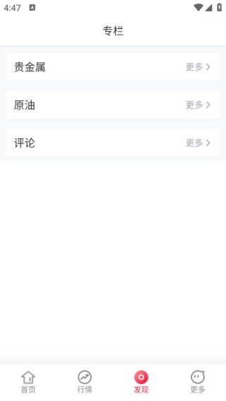 4、点击发现,是可以及时获取贵金属,原油,评论等更多内容;