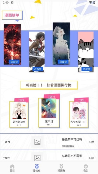 1、下载安装app,进入首页,可以看到不同的漫画分类;
