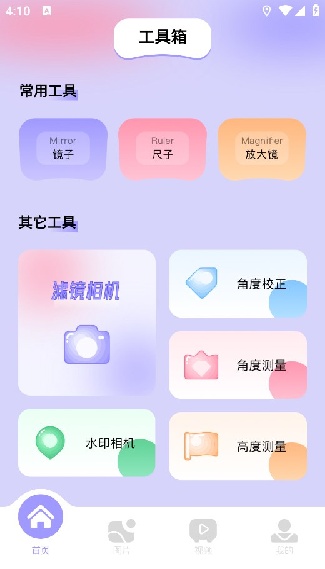 1. 通过本站完成下载安装后将应用打开,在首页便可寻得镜子、尺子这类常用工具。