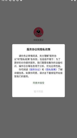1、下载安装APP后打开软件,提示同意与否,点击同意;