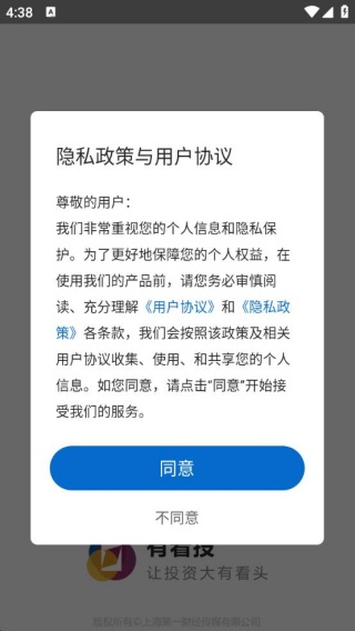 1、下载安装软件后进入,弹出隐私政策与用户协议,点击同意。