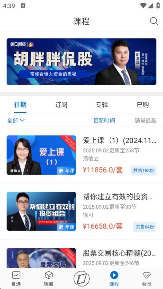 4、点击课程,有各种课程资源提供,掌握股市动态,平台学习课程都是要收费的。