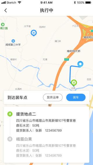 4、用户通过执行中选项功能可以快速查看到用户当前正在进行拉货任务当中的订单信息,点击即可了解详细信息;