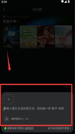 1. 打开软件,进入文生图功能,输入如风景或人物特征这类想要的画面描述,再选择喜欢的风格类型。