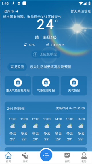 6. 登录且待账号审核通过后,便可使用【流域】和【实况】功能以及其他功能。