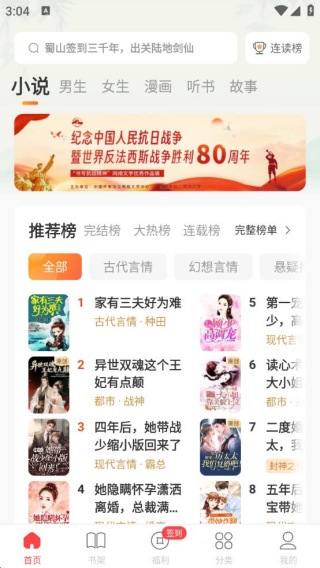2、APP拥有丰富的小说类型,让你尽情阅读;