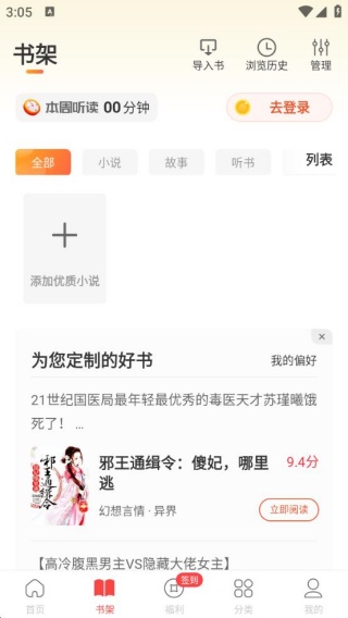 4、将自己喜欢的书籍添加到书架中,方便后面去阅读,让你连续去看书。