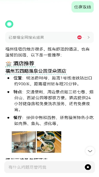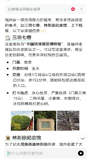 2. 例如你询问“福州有什么景点”,它便会自动给出答案。
