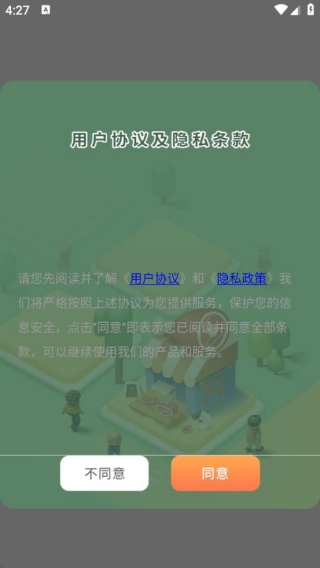 1、下载安装软件后进入,弹出用户协议及隐私条款,点击同意进入。
