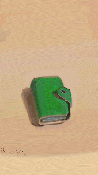 3. 运用绿色块勾勒出名片夹,区分出正面、侧面与立面,此次采用Thick Gloss笔刷,使颜料涂抹得更为厚实,纹理更为显着。
