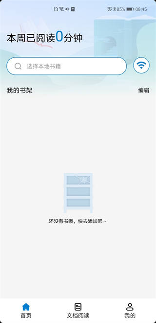 2、首页我的书架,是可以直接添加自己喜欢的书籍,阅读直接点击。