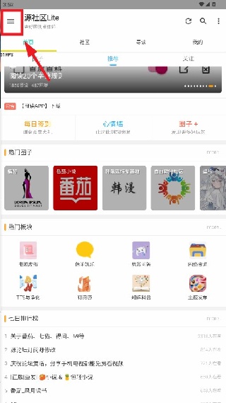 1. 打开源社区Lite,点击左上角的菜单;