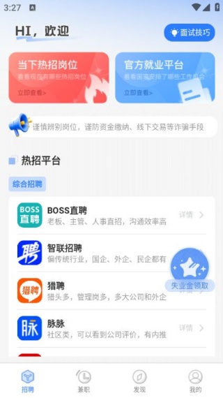 2、在首页即可看到最新的招聘平台;