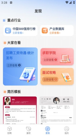 3、提供求职学习资源,包括求职学院的课程、面试攻略等,帮助用户提升求职技能。