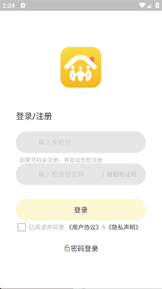 3. 输入手机号和验证码,即可快速登录,进入主页面;