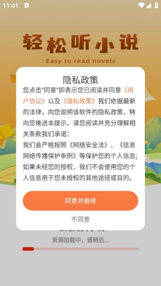 1、下载安装软件后进入,弹出隐私政策,点击同意并继续。