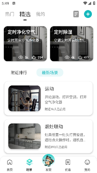 2. 场景栏内有各种精选场景供用户挑选,还能点击右上角“+”手动创建场景。