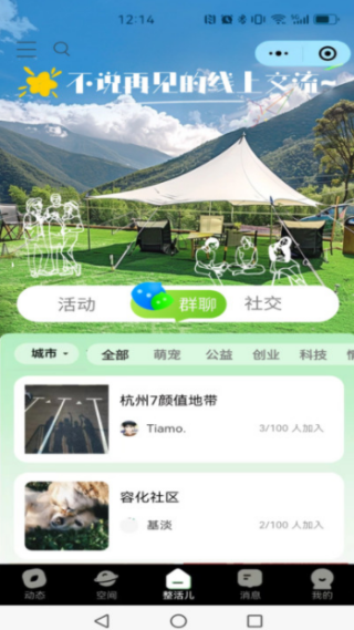 3、用户能快速上手进行动态发布、群聊参与、活动报名等操作。