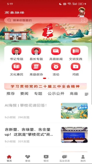 高县融媒app是专门给高县老百姓打造的融媒体服务软件哦!它能给咱带来各类实时新闻,还有便民服务呢。好多精选电视节目随时能播,让你在高县玩得更开心。系统会实时推送本地热点资讯,你还能在这随便爆料身边大事小事,也能看别人发的爆料,了解意见建议、咨询求助等信息。超多精彩直播频道随时开启,感受新闻现场氛围。觉得好的朋友快来下载高县融媒app安装使用呀!