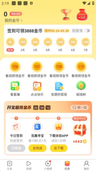 3、点击任务,是可以领取完成各种不同类型的任务。