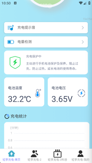 1、在首页中可以了解充电提示音、电量检测,还有电池温工和电池电压等信息;