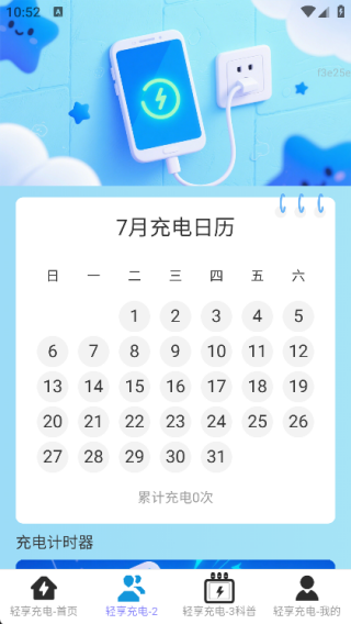2、在的页面中可以了解充电日历,还有充电计时器等功能在里面;