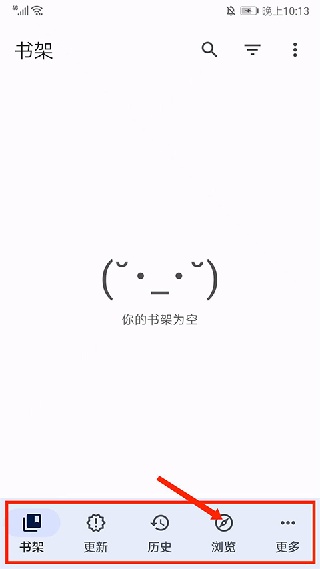 1. 打开插件仓库进入主界面,可看到书架、更新等栏目,点击“浏览”。