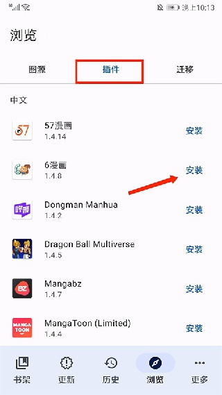 2. 选择一个漫画插件进行安装,例如6漫画就颇为不错。