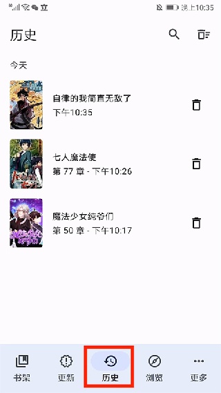 10. 在历史界面可查看之前的阅读记录,点击一下便能接着阅读。