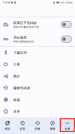 11. 在更多界面,可以对外观、书架、阅读等方面进行设置。