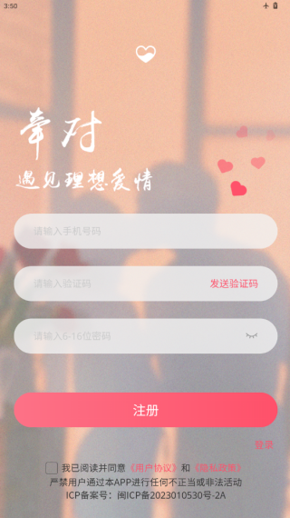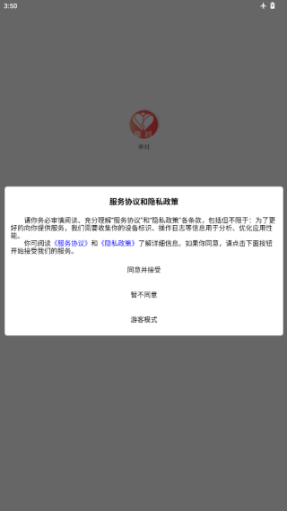 1、下载安装APP后打开软件,提示同意与否,点击同意进入注册界面;