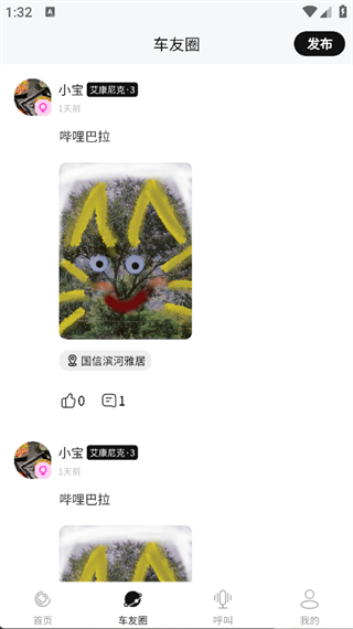 3. 点击页面下方的‘车友圈’,即可看到车友的动态;