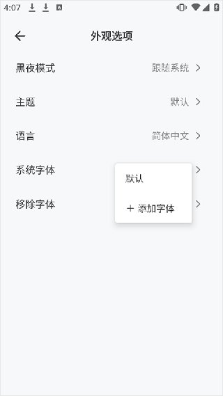 5. 在设置里,外观的修改、字体的添加都可行,阅读体验也会因此更佳。