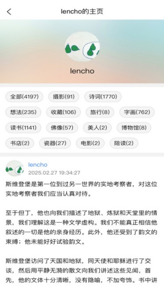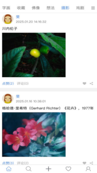 2、用户发布的文化内容经过一定的自我筛选与社区氛围影响,整体质量较高。