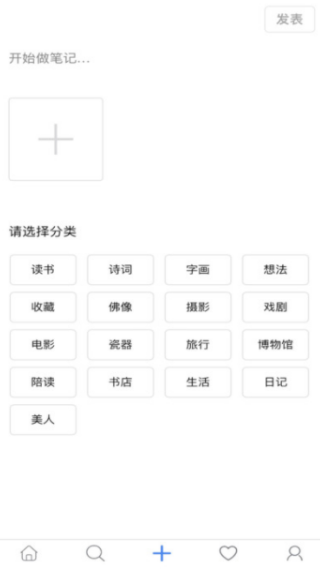 1、支持内容发布,输入文字、添加图片,选择相应分类后发表笔记,分享自己在文化领域的见解与作品。
