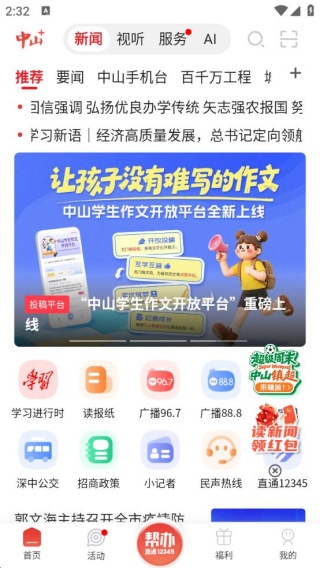 2、点击视听,方便去看新闻,看电视,听广播。