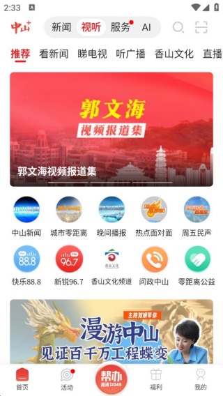 2、全新直播,带你进入新闻现场,让你沉浸新闻,直观中山;
