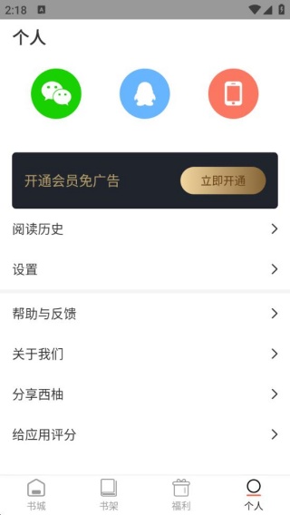 4、具备清新风格的专属书架,登录账号自动同步书架,你所喜欢的小说一个不落;