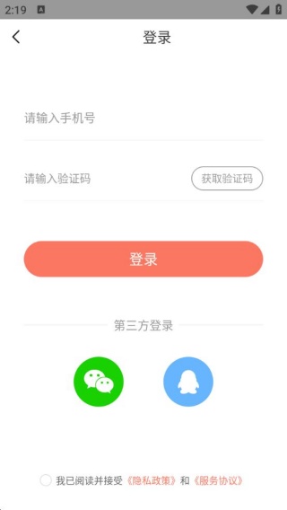 4、输入手机号验证码进行登录,还可以选择第三方登录。