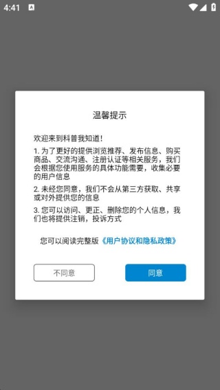 1、下载安装软件后,弹出温馨提示,点击同意。