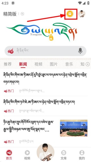 1、下载安装软件后,进入到平台首页,点击右上角的礼包图标。