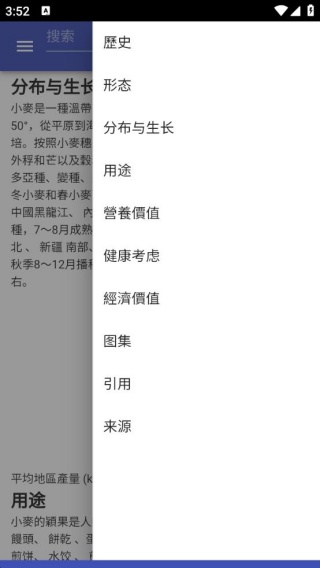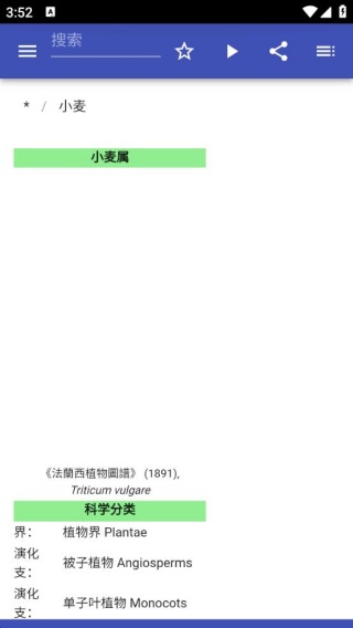 4、在这里每一种谷类产品都有着分布区域、学名等等信息显示;