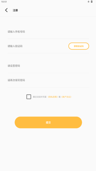 1、下载安装APP后打开软件,提示同意与否,点击同意进入注册界面;