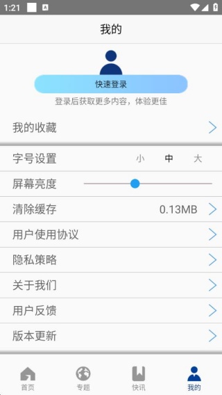4、进入到我的界面,是可以进行阅读字号的调节,还可以快速登录。