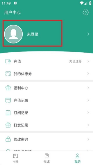 2、在我的界面找到“未登录”,点击进入到登录界面。