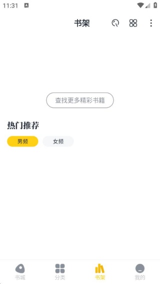 1、下载安装软件后打开,直接进入到平台书架,方便添加喜欢的小说。
