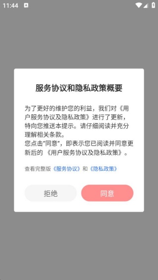 1、下载安装软件后打开,弹出服务协议和隐私政策概要,点击同意。