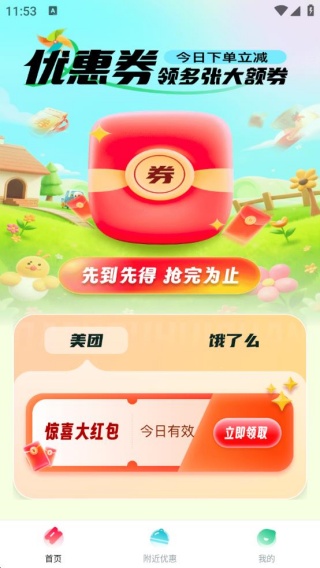 3、平台首页有美团,饿了么惊喜红包,每天都是可以免费去领取,惊喜不断。